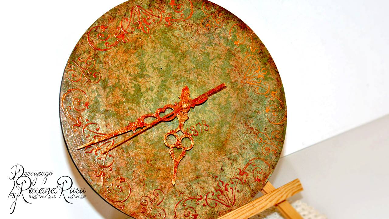 TUTORIAL DECOUPAGE Ceas antic din MDF cu folia decor Pentart / Decoupage tutorial vintage mdf clock with dekor foil Pentart